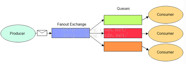 当你发送一条消息到fanout交换器时,它会把消息投递给所有附加在此交换器上的所有队列。